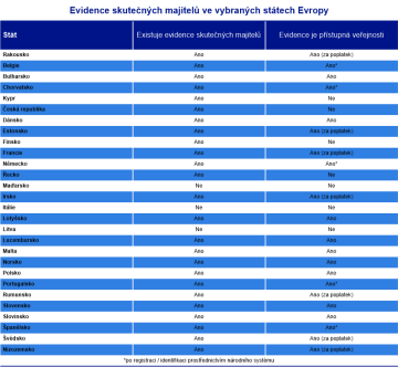 Pro přehled uvádíme vybrané státy v Evropě s informací, zda vedou evidenci skutečných