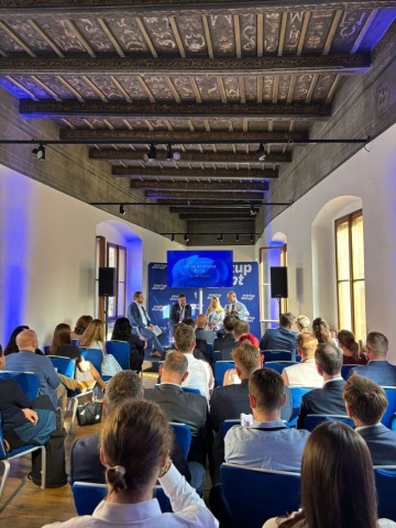 V druhé části večera se rozhodla Kristýna Faltýnková, advokátka PRK Partners, účastníkům zprostředkovat dojmy z dosavadního průběhu konference Innovations United 2025. Na pódiu se k ní připojila Beáta Petrušová z Generali CEE Holding a také Patrik Juránek, zakladatel Startup Disrupt a pořadatel zmiňované konference. Během krátkého freestylu, jak to sami nazvali, probrali s publikem ty nejzajímavější myšlenky z celého dne, přičemž většina z nich se týkala AI - například zda by se nechali radši operovat robotem s umělou inteligencí nebo chirurgem, který "zrovna nemusí mít svůj den”.