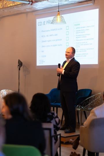 Našimi hosty byli pro tento večer Martin Mesršmíd z Digitální a informační agentury (DIA), který přítomným představil práci DIA a také plány do budoucna. V panelové diskuzi moderované Kristýnou Faltýnkovou usedli Iva Suchá, vedoucí Odboru Kanceláře IT Kooperativa pojišťovny, Jan Šedivý, odborník na umělou inteligenci a strojové učení, který na ČVUT vede tým , který se specializuje na vývoj pokročilých AI aplikací, včetně chatbotů a systémů zpracování přirozeného jazyka (Big Data and Cloud Computing) a v neposlední řadě také Daniel Vejsada, tentokrát v roli nadšence do digitálních technologií. Po nich následoval rozhovor Daniela Vejsady (už z moderátorského křesla) s Jaromírem Talířem, odborníkem na oblast internetové infrastruktury a bezpečnosti z CZ.NIC.