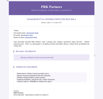 In the event that you notice such activity, we recommend that you do not communicate with the scammers or open any attachments to these messages. If you have any doubts as to whether the communication addressed to you actually originates from our law firm, or if you have any suggestions or questions about the above, please contact us at any time by phone at +420 221 430 111 or by e-mail at: prague@prkpartners.com.