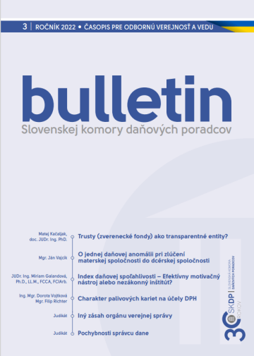 Celý článok bol uverejnený v časopise pre odbornú verejnosť a vedu bulletin Slovenskej komory daňových poradcov.